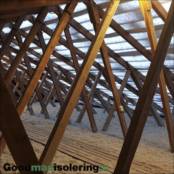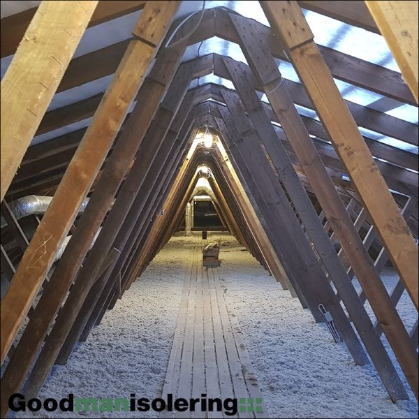 Hos Goodman Isolering udfører vi alle former for loftisolering, både for private, boligforeninger og boligselskaber. Hvis der på loftet ligger 200 mm isolering eller mindre kan du med stor fordel efterisolerer med yderligere 100-300 mm og opnår en lavere varmeregning og et bedre indeklima. Ved isolering af loft opnår huset et bedre energimærke, så vil huset også blive mere værd. Under en normal isolering af loftet vil vi typisk hæve gangbroen, bygge en kasse om loftlemmen, montere vindbegrænsere i tagfoden og til sidst isolere loftet med Thermofloc Papirisolering. Hvis du har lyst til at høre hvordan vi kan hjælpe netop dig eller din boligforening, så ring til os på 3142 0110 eller klik HER og udfyldt skemaet.